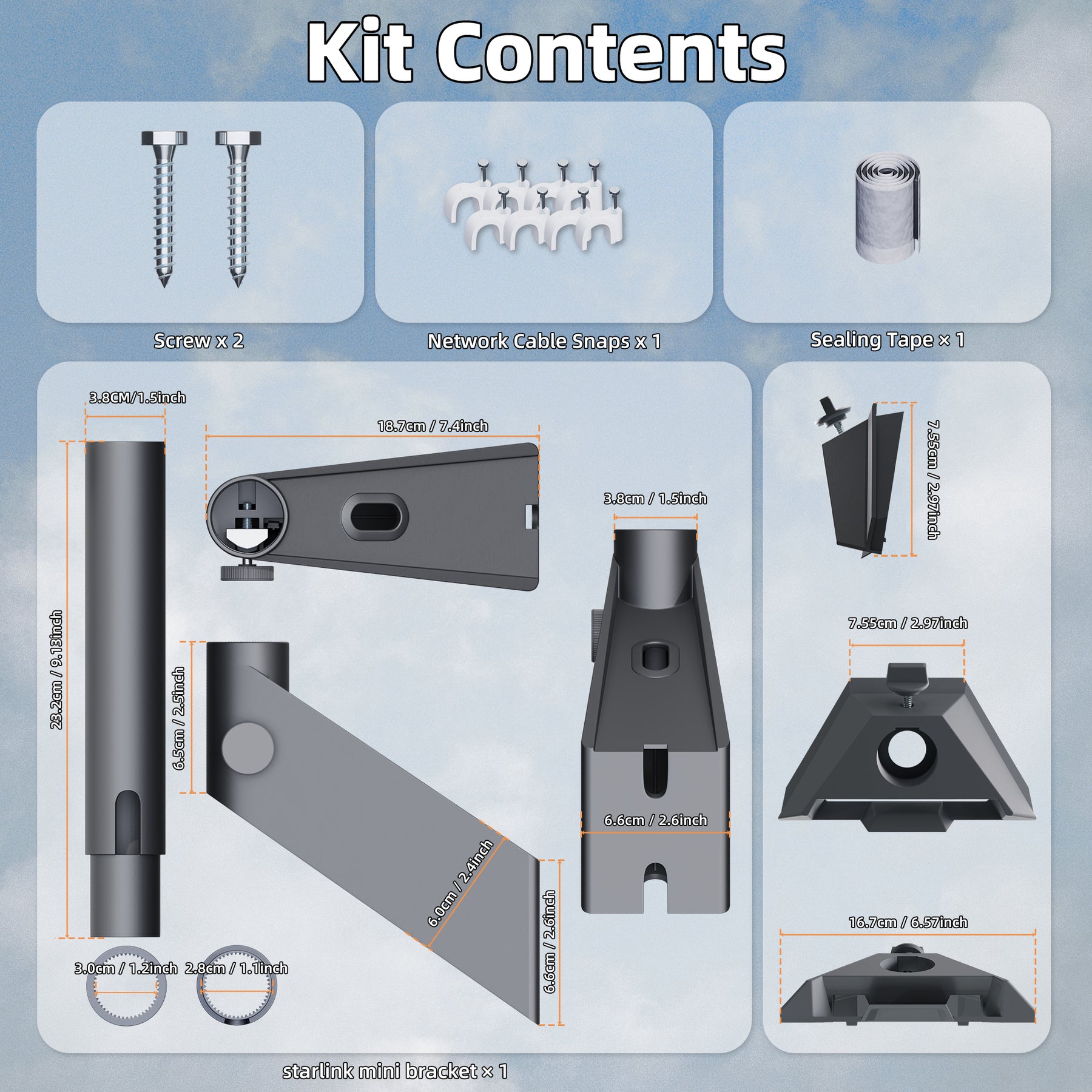 【Dedicated Compatibility & Kit Contents】- This Starlink Mini wall mount kit is precisely engineered exclusively for the Starlink Mini satellite dish, ensuring a perfect fit. The complete mounting package includes the main bracket, an extension pole (approx. 23.2cm/9.13in), two installation screws, a set of five network cable snaps, and sealing tape. This dedicated Starlink Mini accessory provides all essential hardware for a secure installation.
