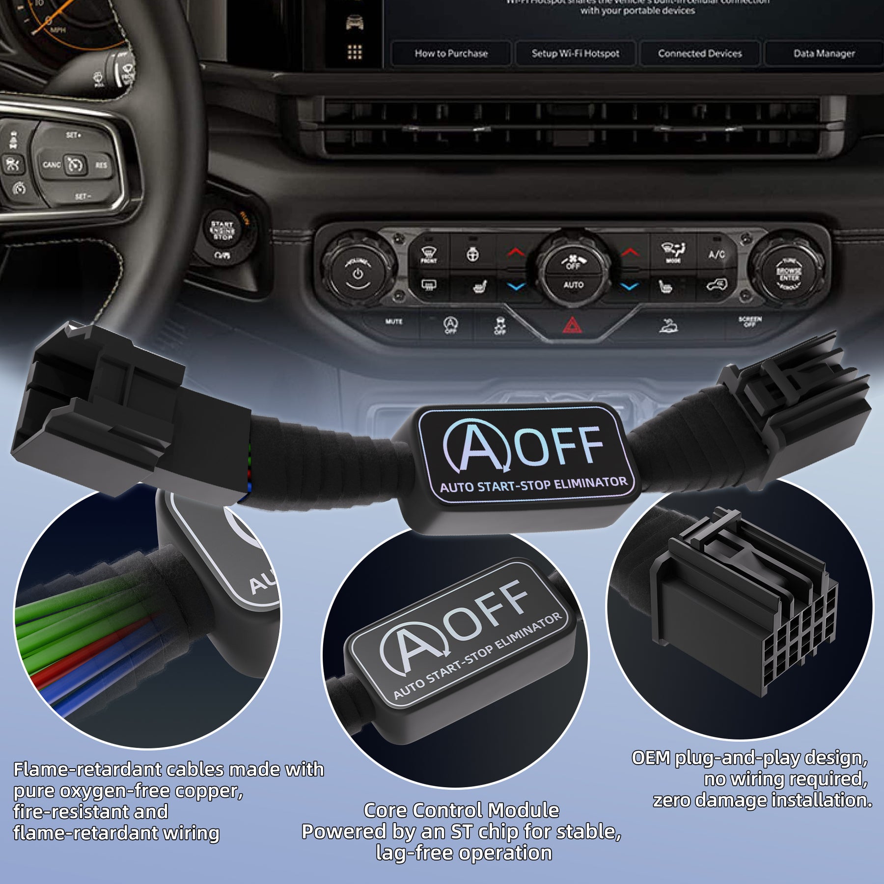 【Non-Destructive OEM Connection】- An OEM plug-and-play design allows for a zero-damage installation that preserves the integrity of the factory wiring harness. The direct-fit connector integrates seamlessly behind the dashboard controls to maintain a professional and completely hidden appearance.
